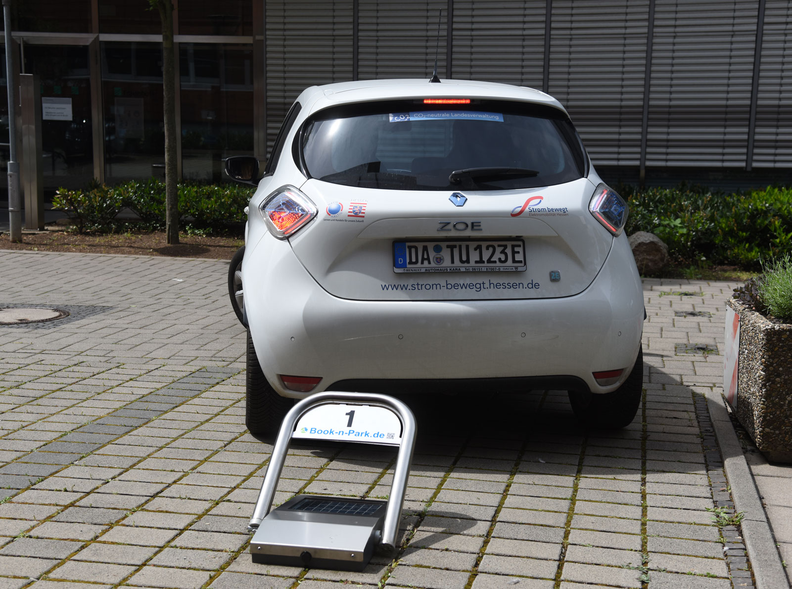 Vor Ort können Mitarbeiter dann mit einem Klick den Parkbügel öffnen.